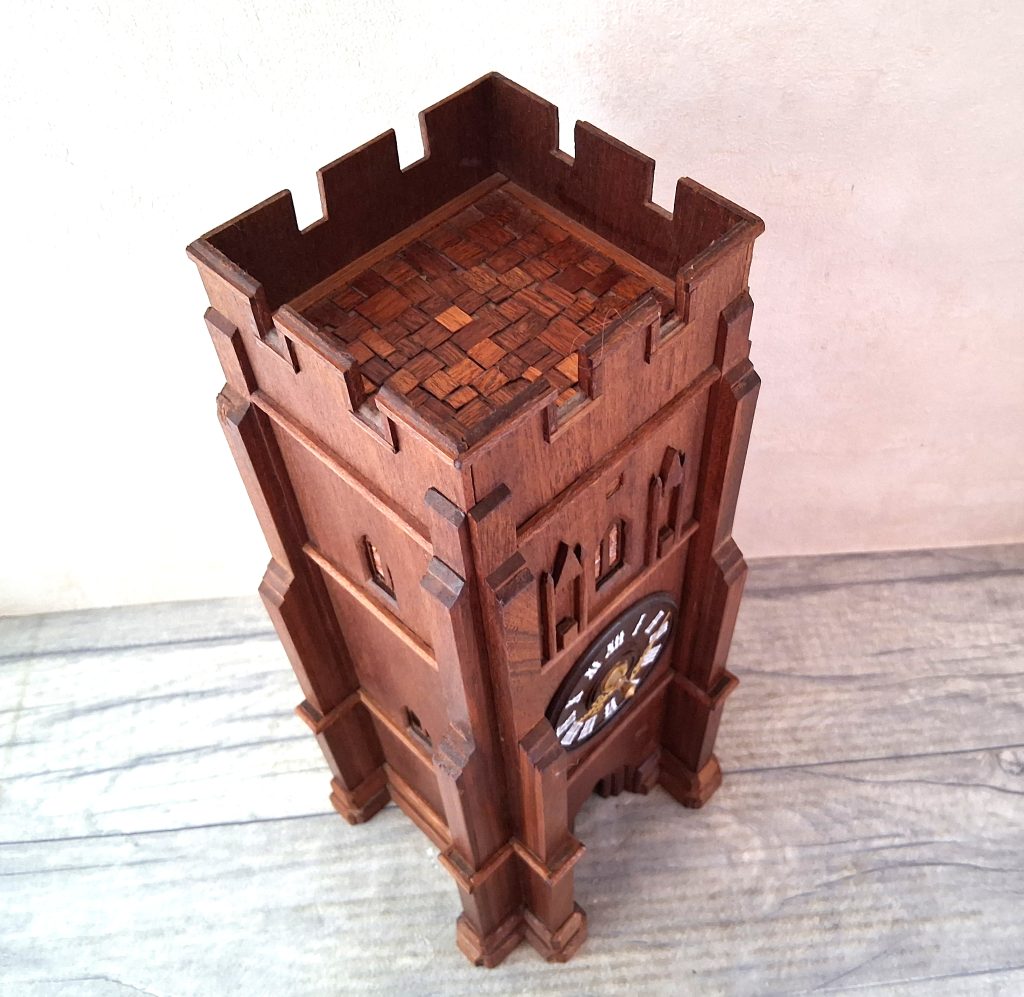Unlike the actual Tor which is hollow, this clock has a flat roof and a couple of shelves within. It has an open back and is approximately 1:65 scale. Size: 325mm (height) x 165mm (width) x 130mm (depth).