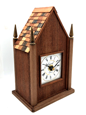 This was one of our odder creations – this is a box clock, but one we went all-in with with the buttresses, finials and detailing. The top opened up as a hinged lid, allowing small odds and ends to be kept inside.